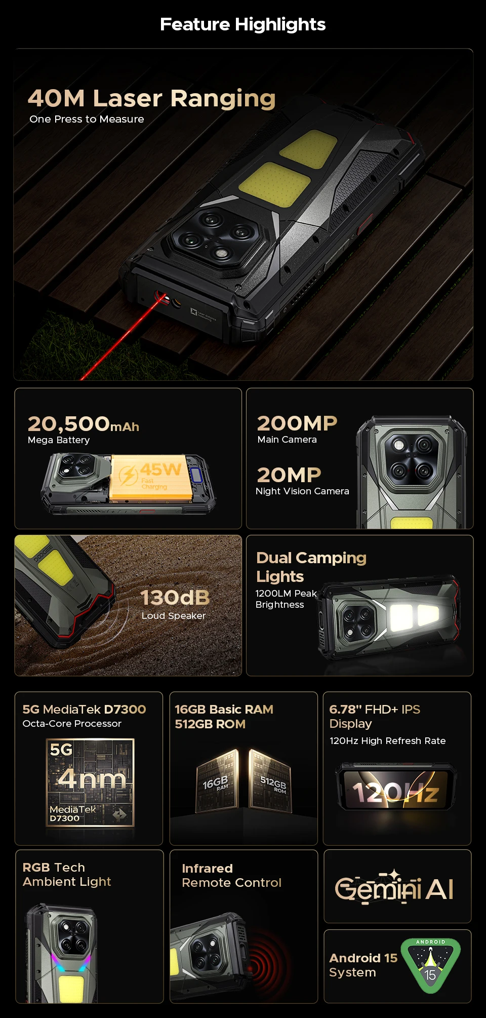 Laser Rangefinder / Dual Camping Lights / Light Effect / Gemini AI