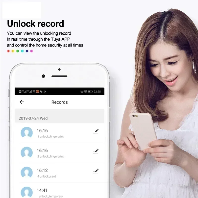 * Multiple ways to open the door, fingerprint, card, password, WeChat applet, and key can all be unlocked.