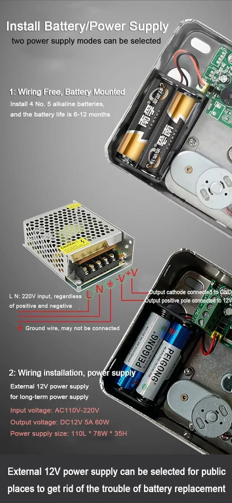 Power supply: 4 * AA alkaline dry batteries (without battery), USB emergency power supply