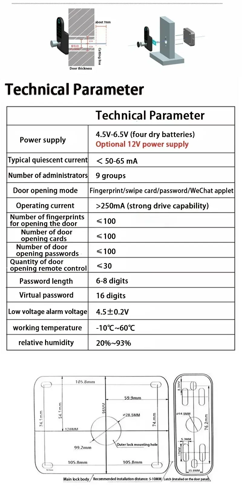 Applicable door thickness: less than 6cm