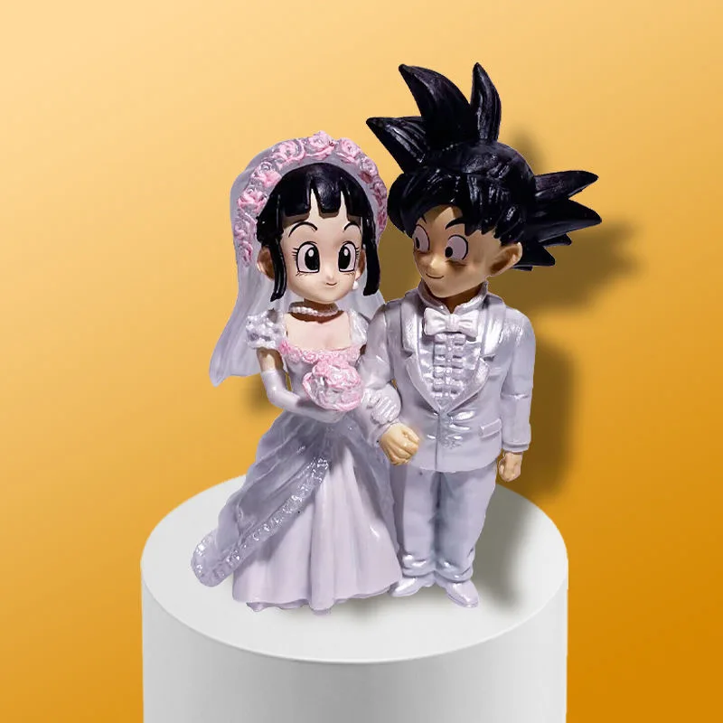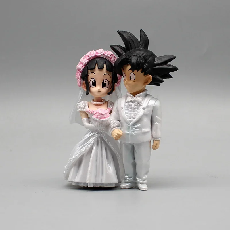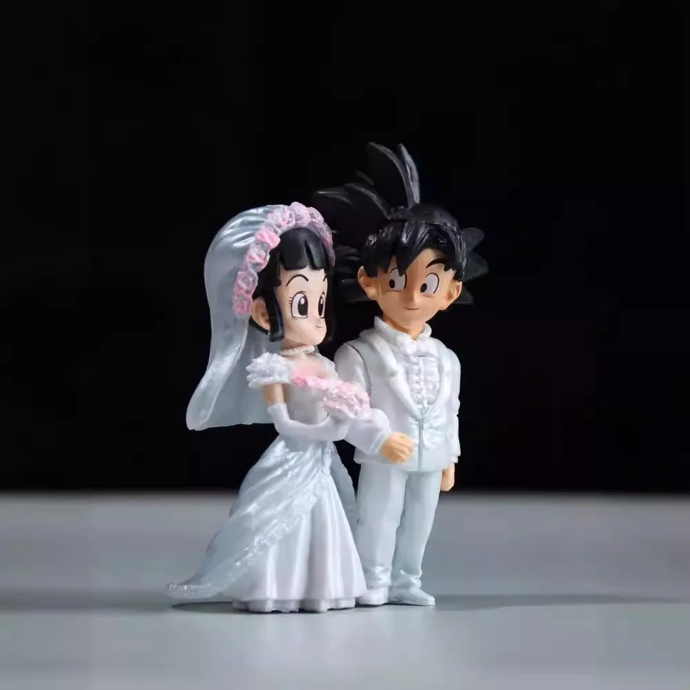 Dragon Ball Anime Figure Son Goku Figures Lg Wedding Goku Chichi Mariage Figurine 9cm Scene Statue Q-Version Pvc Model Doll Toys