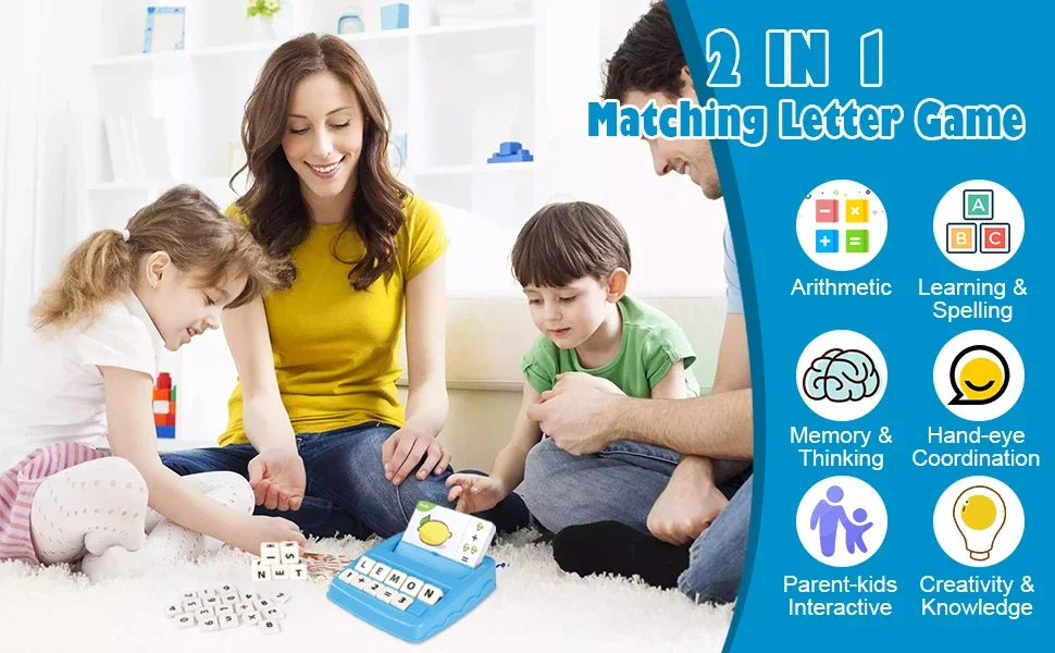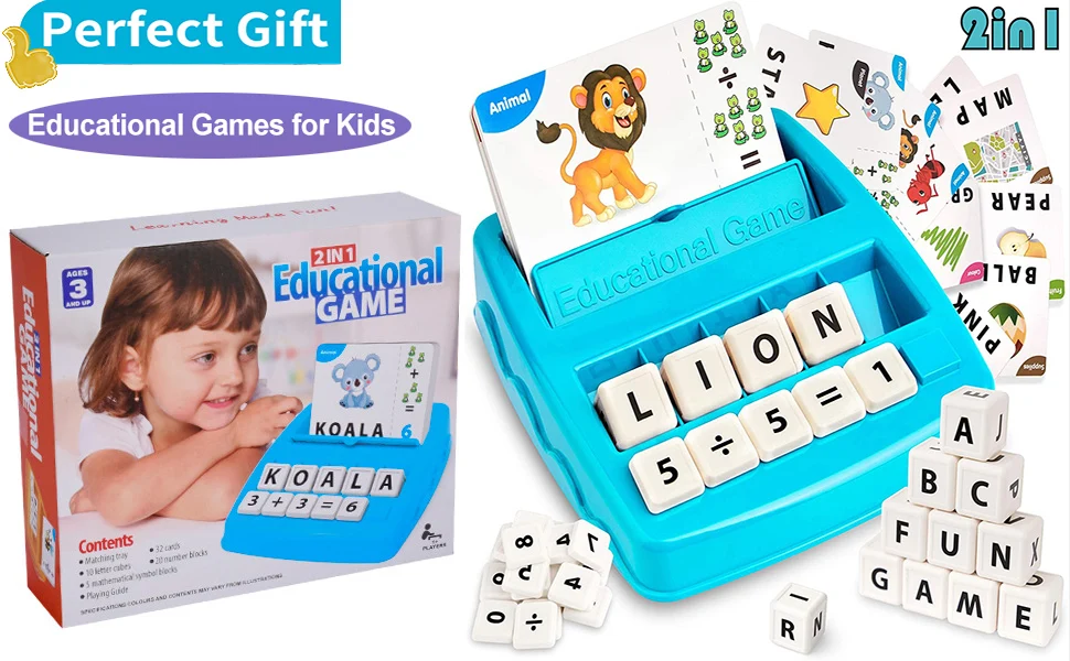 Educational Toys Learning Games for Kids 2 in 1 Matching Letter Spelling Number Cognition Early Math Game for Boys Girls Gifts