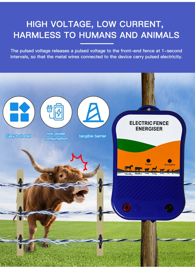 1-3km Electric Fence Livestock Mains Powered 12V Energzier,Electric Fence Kit Cattle,Sheep for Animals Complete