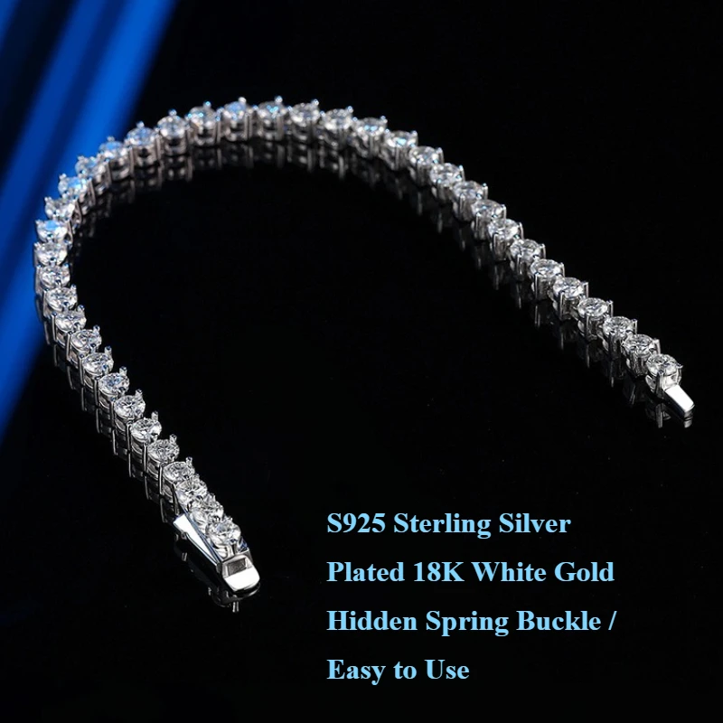 3 Claw Full Moissanite Bracelet  — 3mm 0.1CT / 4mm 0.3CT / 5mm 0.5CT Options with S925 Silver Double Safety Buckle