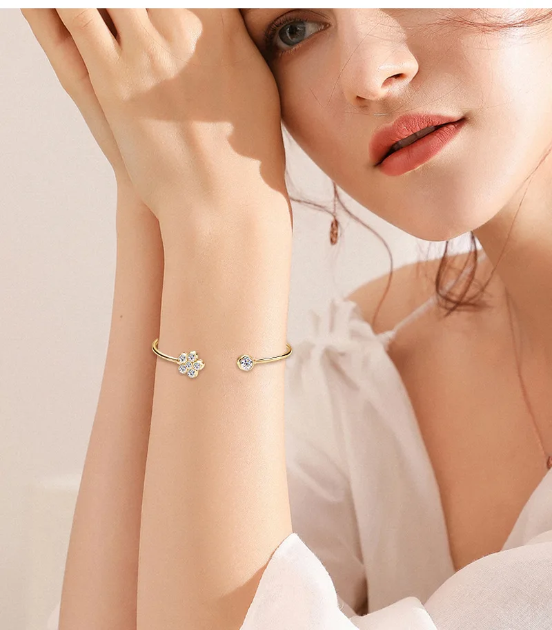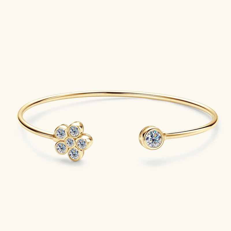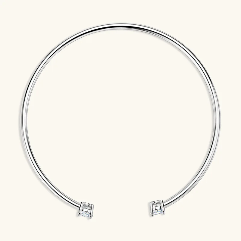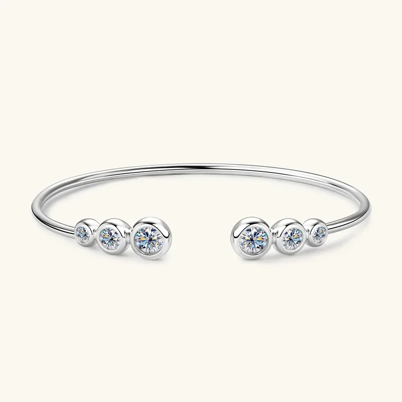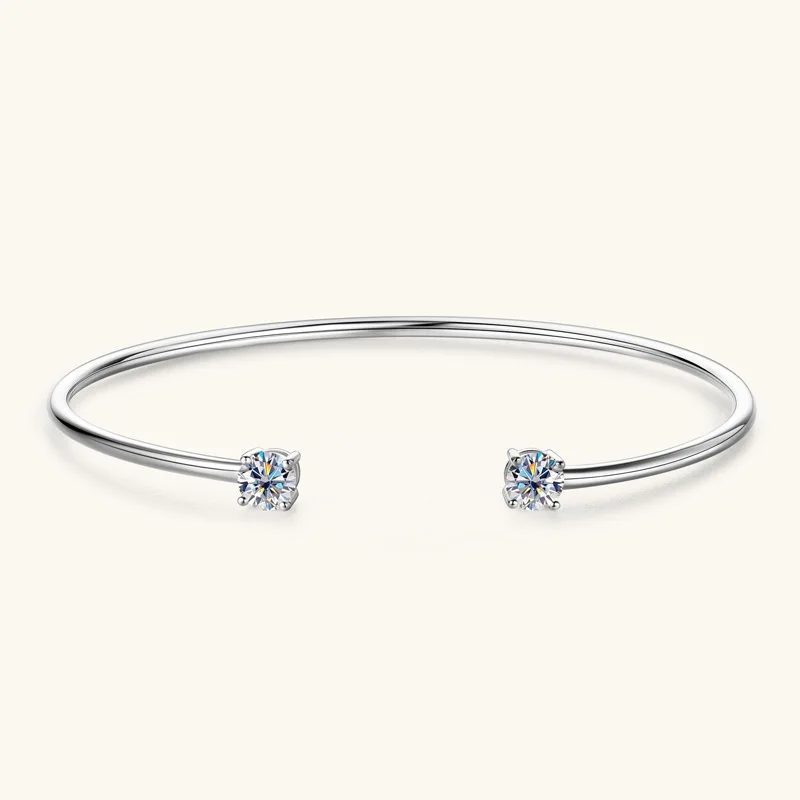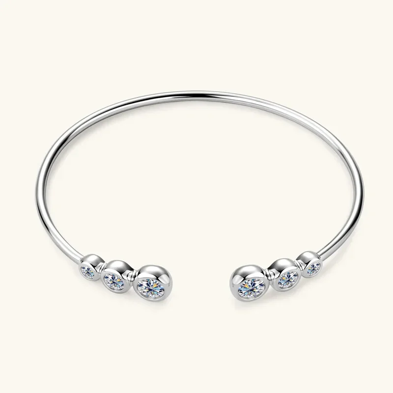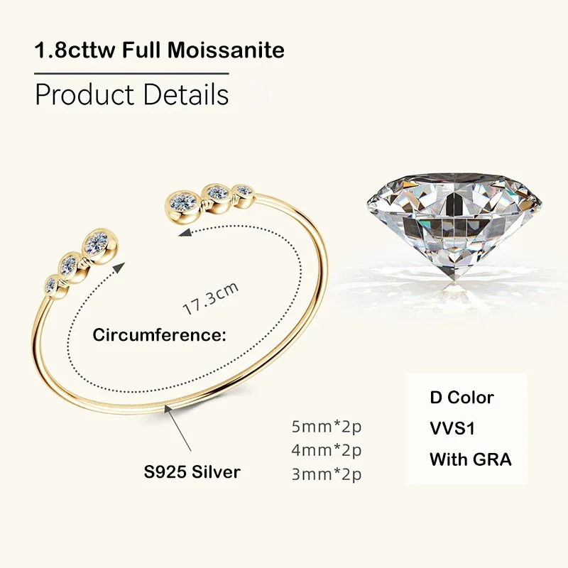EWYA Four Prong 5mm 0.5CT Round Cut D Color Moissanite Cuff Bangle Bracelet For Women Girl 925 Silver Open Chain Bangles Gift