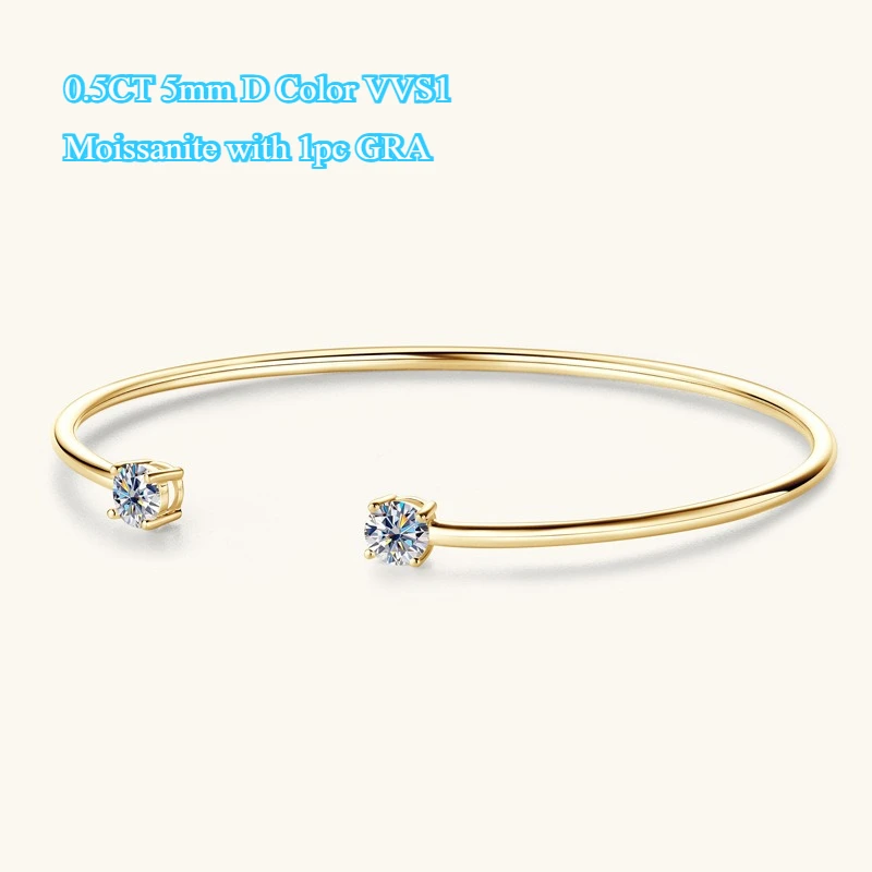 EWYA Four Prong 5mm 0.5CT Round Cut D Color Moissanite Cuff Bangle Bracelet For Women Girl 925 Silver Open Chain Bangles Gift