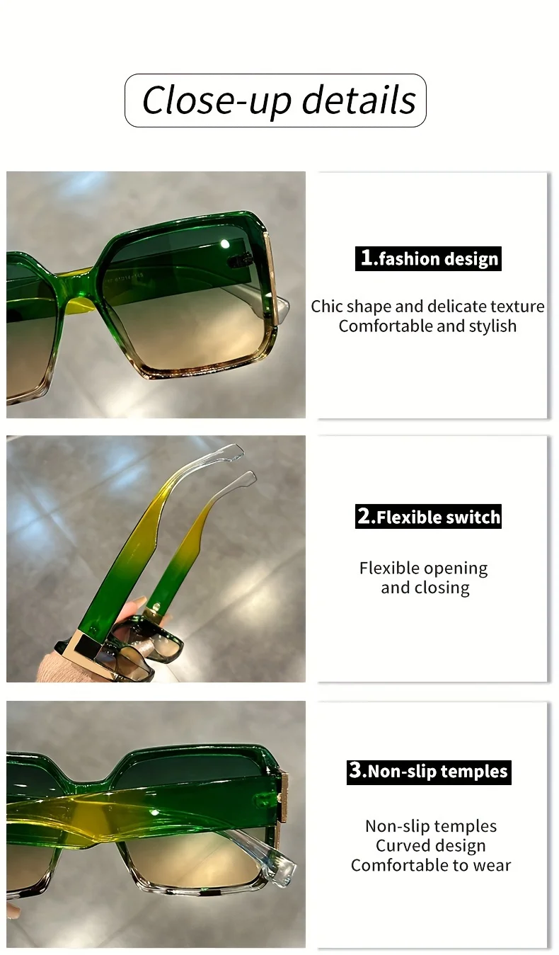 Extra Large Square Fashion Sunglasses for Men and Women Brand Gradient Color Glasses Summer Party