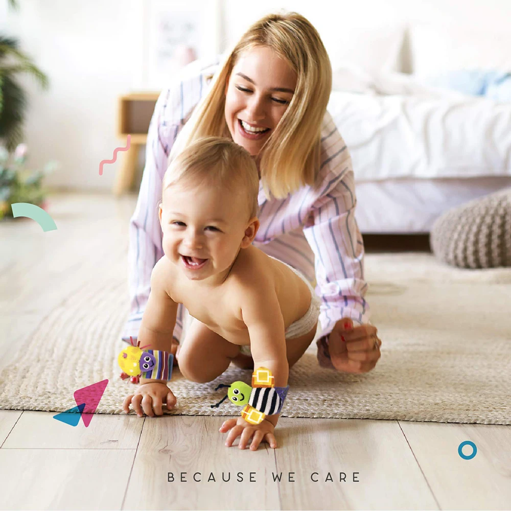 🧠 STIMULATES BABY’S SENSES – The bright colors and contrasting patterns of our wrist rattles for infants help stimulate your little one’s visual development and color cognition. With adorable crinkling bug friends attached to each wearable rattle, these baby toys are sure to keep them entertained for hours on end