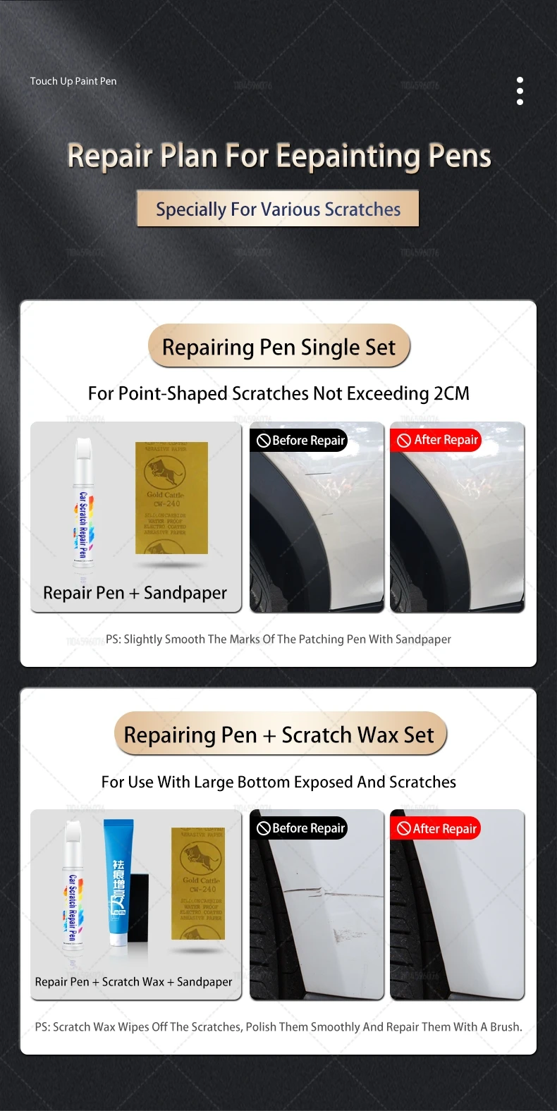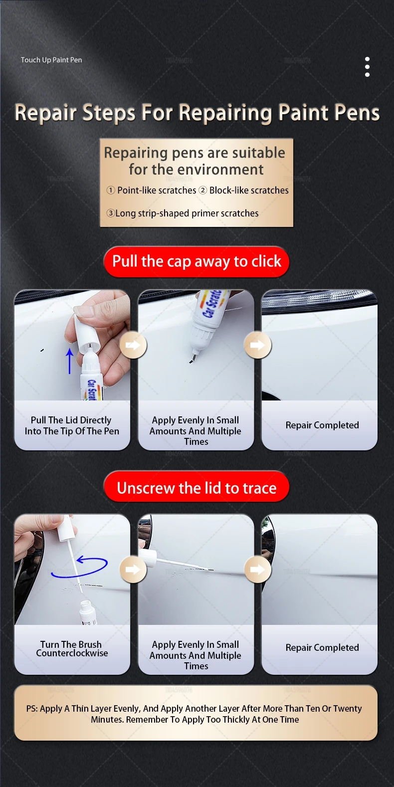 Apply this product to the small paint damage, you can repair, cover up the wound. Easy to use, just compare the body, choose the right paint pen.