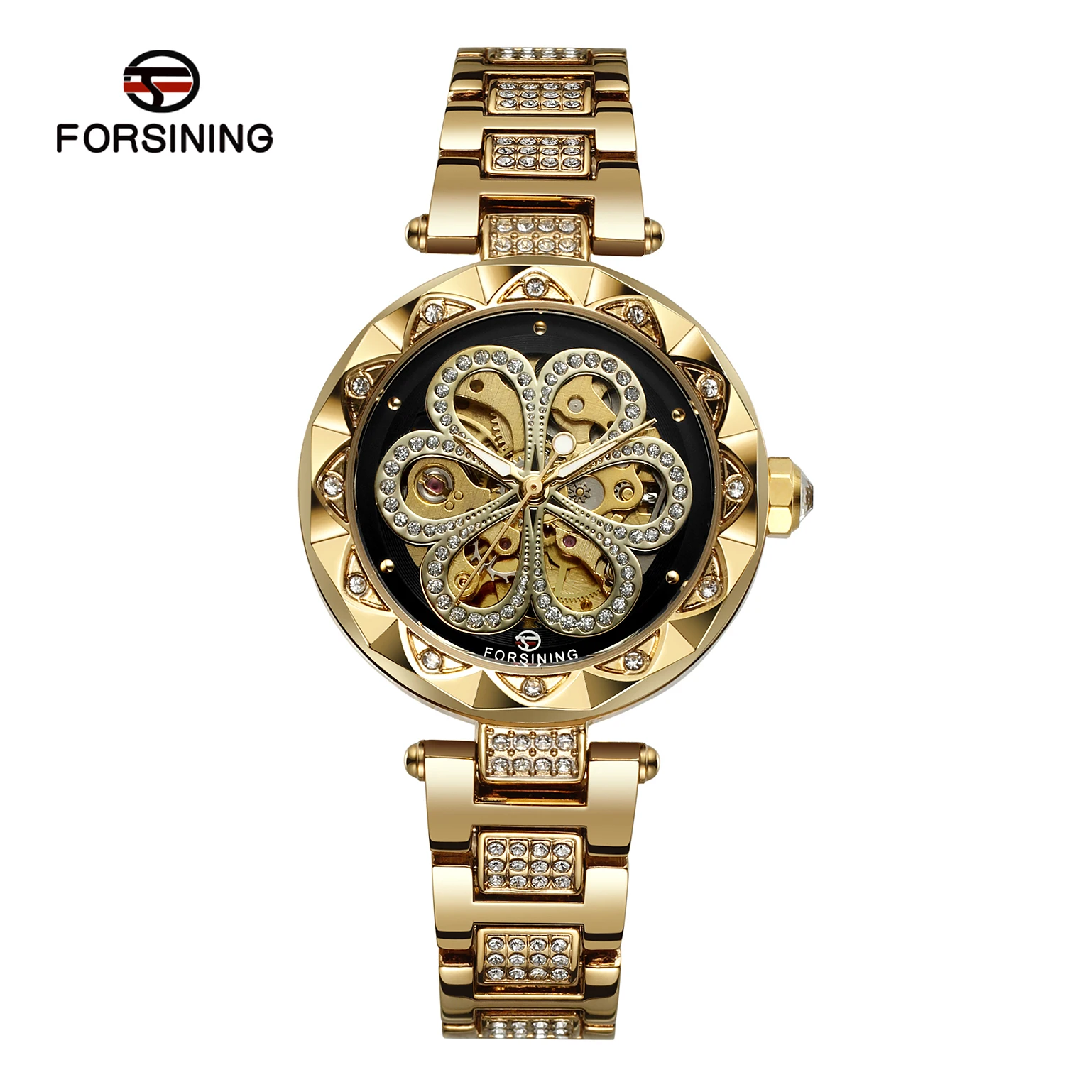 dial: black color,with clear stones,skeleton.