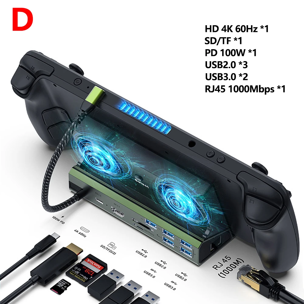 Game Console USB C Docking Station HUB HDMI-Compatible 4K 60Hz PD100W for Steam Deck ROG Ally Nintendo Switch Legion Go