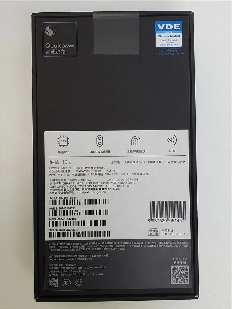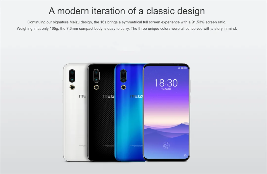 Global ROM Meizu 16S 6.2 Inch Dual Rear Camera 8GB RAM 128GB ROM Snapdragon 855 Octa Core 4G 3600mAh Smartphone