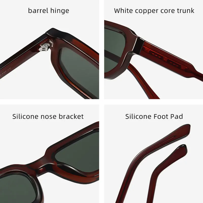 HBK New Fashion Small Frame Men Sunglasses Polygon Cupronickel Core Insert Leg Sun Glasses Outdoor Party Vacation Travel