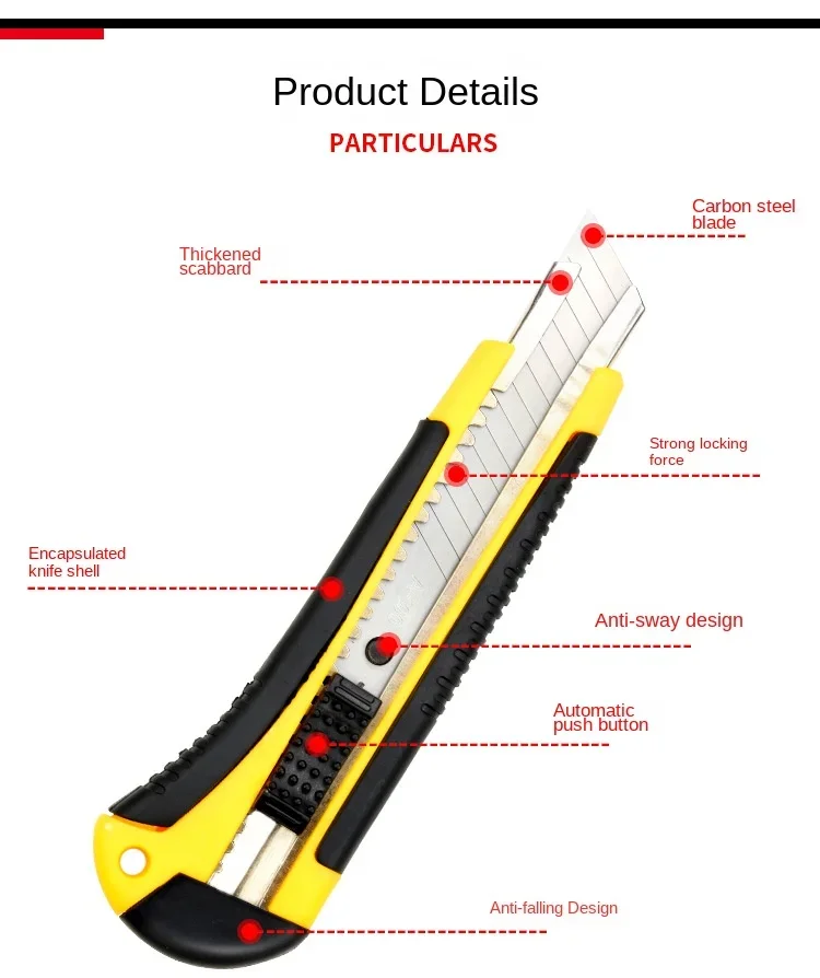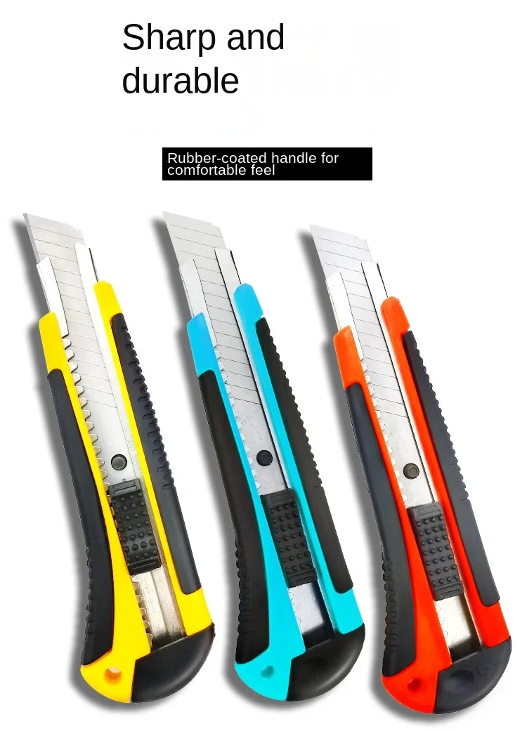 1Pc Utility Knife Rubber Handle Heavy Duty Retractable Cutter Knife Snapoff Blade Box Cutter for Cutting Carpet Plastic Unboxing