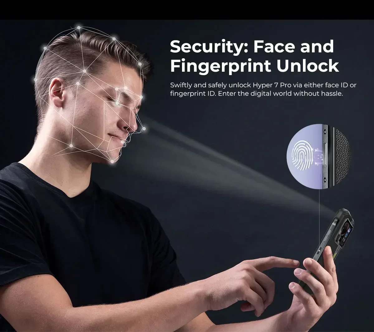 Swiftly and safely unlock Hyper 7 Pro via either face ID or fingerprint ID. Enter the digital world without hassle.