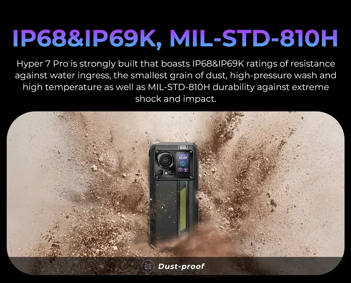 Hyper 7 Pro is strongly built that boasts IP68 & IP69K ratings of resistance against water ingress, the smallest grain of dust, high-pressure wash and high temperature as well as MIL-STD-810H durability against extreme shock and impact.