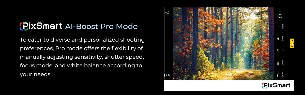 To cater to diverse and personalized shooting preferences, Pro mode offers the flexibility of manually adjusting sensitivity, shutter speed, focus mode, and white balance according to your needs.