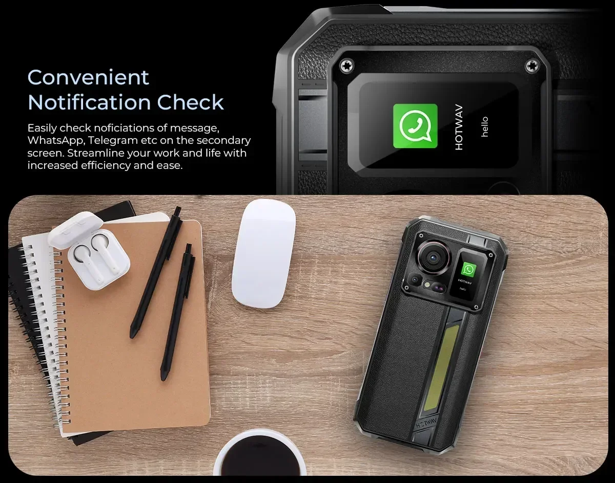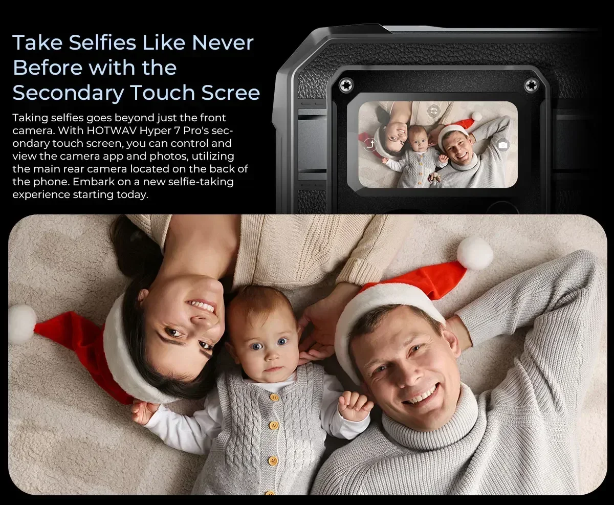 Taking selfies goes beyond just the front camera. With HOTWAV Hyper 7 Pro's secondary touch screen, you can control and view the camera app and photos, utilizing the main rear camera located on the back of the phone. Embark on a new selfie-taking experience starting today.