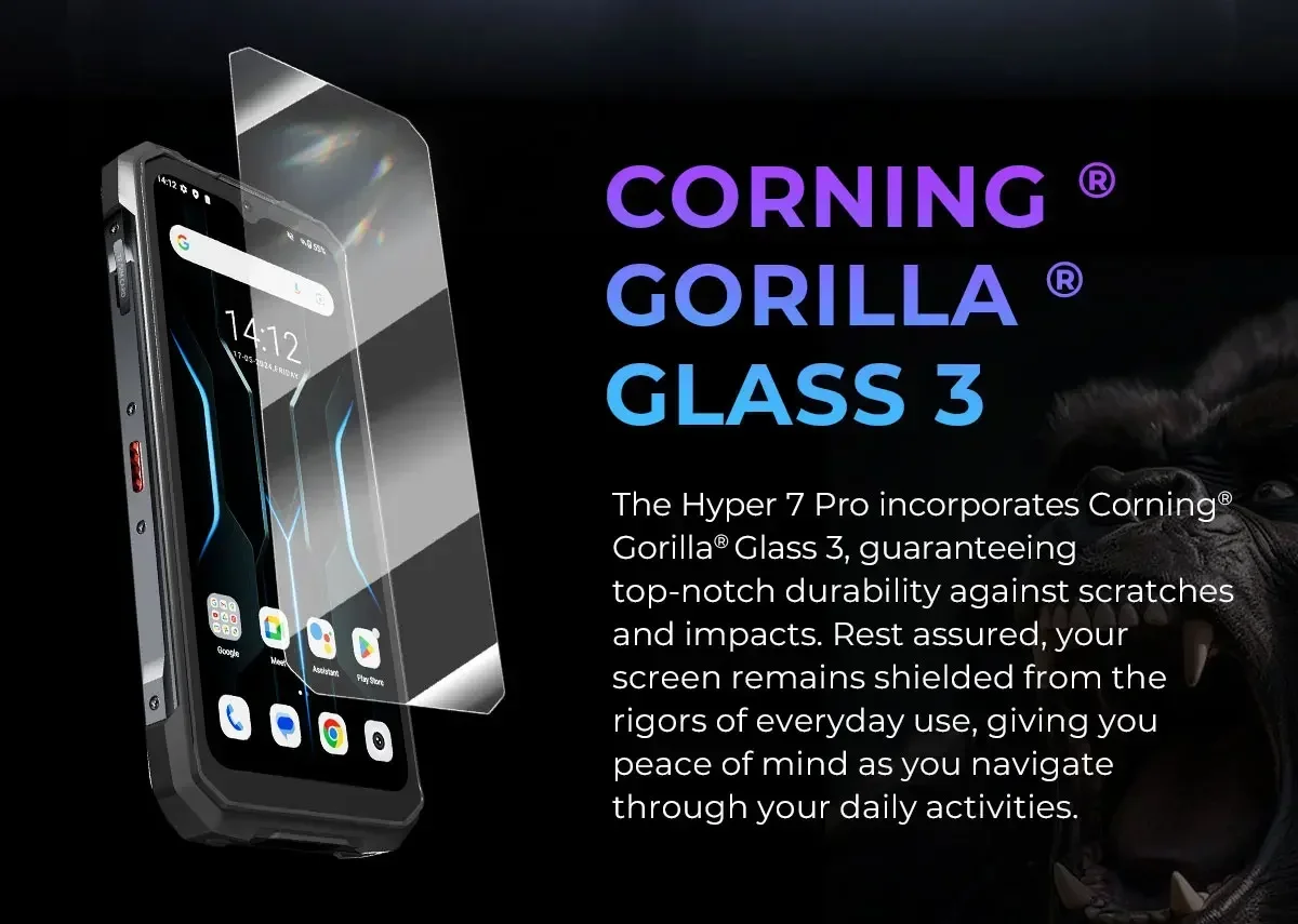 The Hyper 7 Pro incorporates Corning® Gorilla® Glass 3, guaranteeing top-notch durability against scratches and impacts. Rest assured, your screen remains shielded from the rigors of everyday use, giving you peace of mind as you navigate through your daily activities.