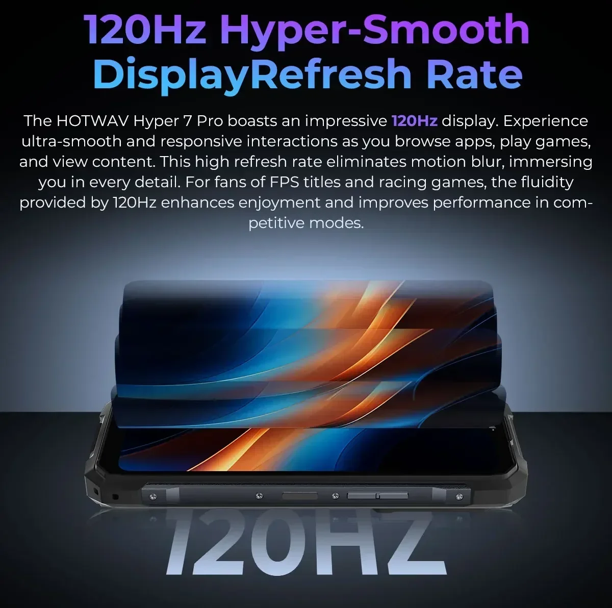 The HOTWAV Hyper 7 Pro boasts an impressive 120Hz display. Experience ultra-smooth and responsive interactions as you browse apps, play games, and view content. This high refresh rate eliminates motion blur, immersing you in every detail. For fans of FPS titles and racing games, the fluidity provided by 120Hz enhances enjoyment and improves performance in competitive modes.