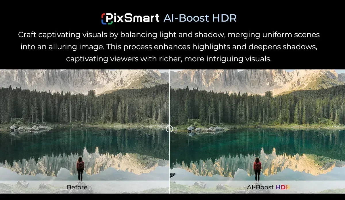 Step into a realm of unparalleled clarity with images boastingan astounding 200 million pixels (12256*16320) courtesy of the ISOCELL HP3 lens, synergized with cutting-edge Pixsmart Al-boost technology. Immerse yourself in unrivaled clarity and a wealth of sumptuous details.