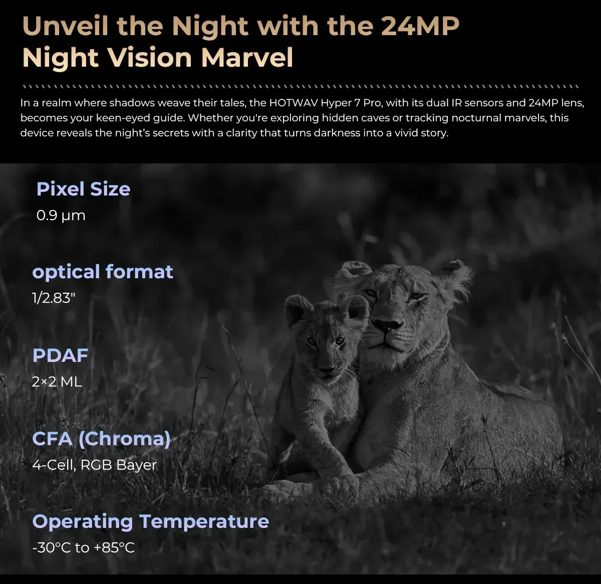 In a realm where shadows weave their tales, the HOTWAV Hyper 7 Pro, with its dual IR sensors and 24MP lens becomes your keen-eyed guide. Whether you're exploring hidden caves or tracking nocturnal marvels, this device reveals the night's secrets with a clarity that turns darkness into a vivid story.