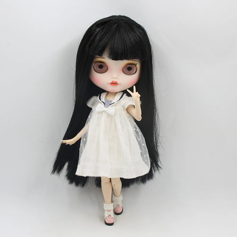 ICY DBS Blyth doll 1/6 bjd with open mouth black straight hair white skin customized matte face Joint body