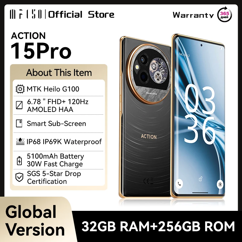 IIIF150 Action 15 Pro Smartphone Smart Sub-Screen 6.78″ FHD+ 3D AMOLED Display 5100mAh IP68 IP69K Waterproof Anti-drop Phone