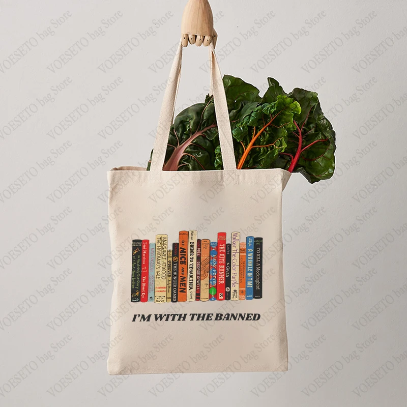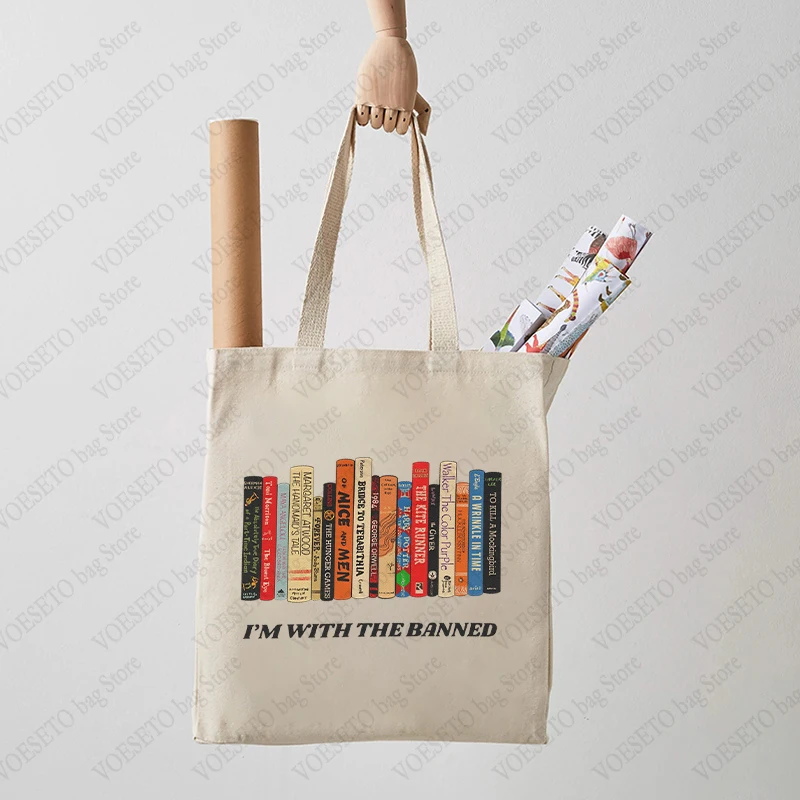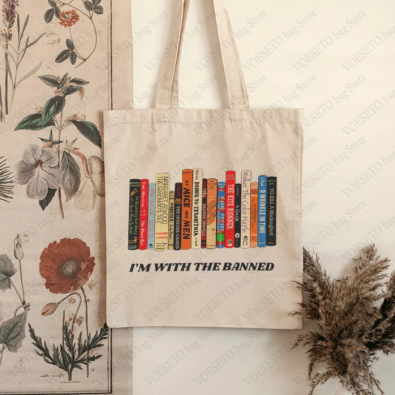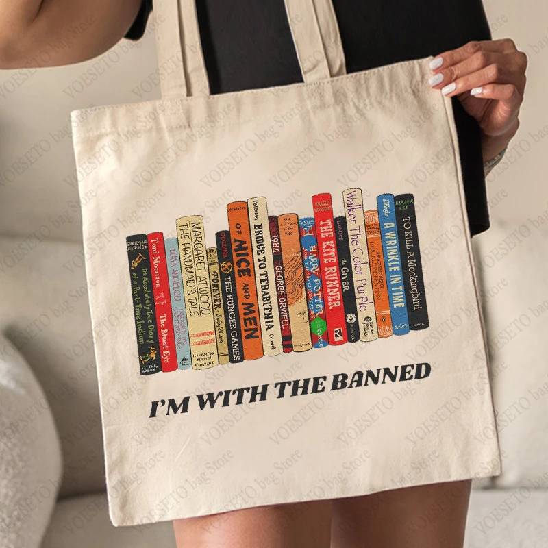 I’m with The Banned Pattern Book Tote Bags Bookish Reading Shoulder Bag, Stylish Library & Teacher Book Handbag