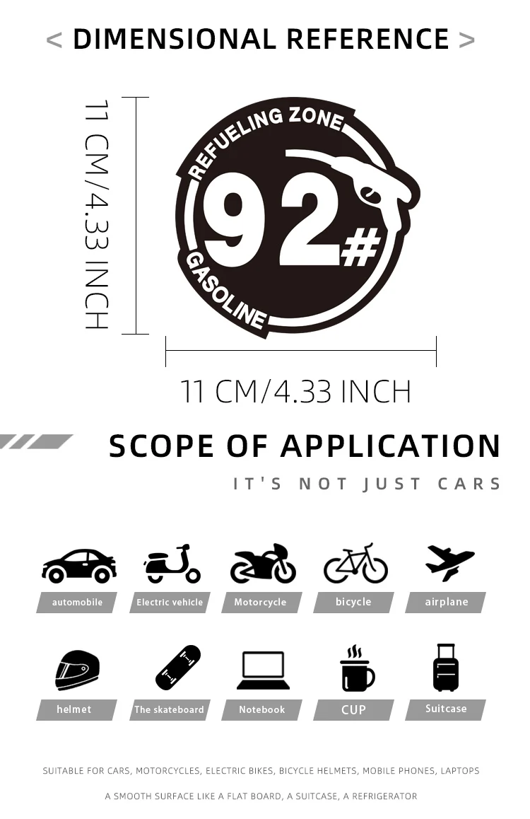 JDM Fuel Cap Decal Refueling Reminder Sticker Reflective Warning Label 92 Racing 95 Gasoline Car Fuel Alert Sticker