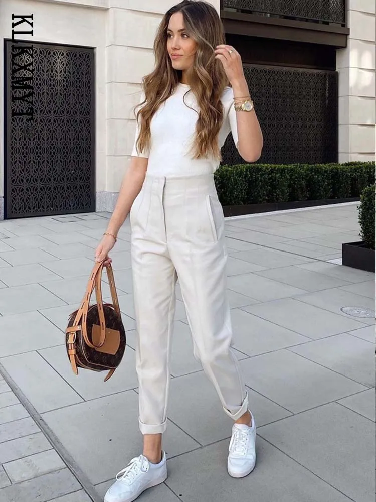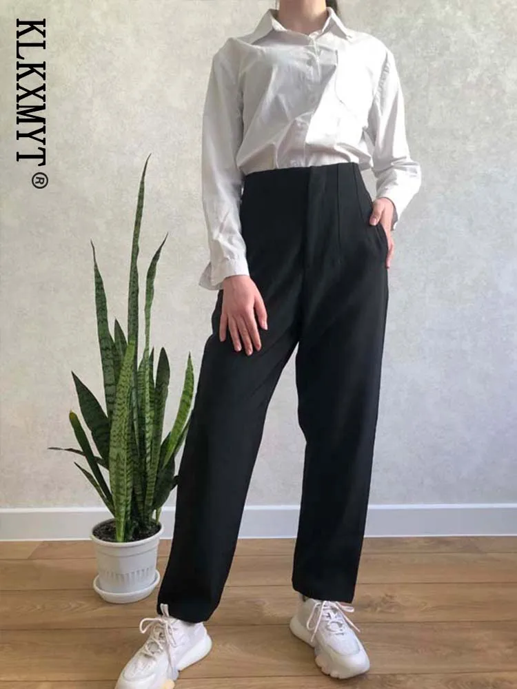 Klkxmyt Woman Pants 2025 Chic Fashion Office Wear Pants For Women Vintage High Waist Zipper Fly Female Ankle Trousers Mujer