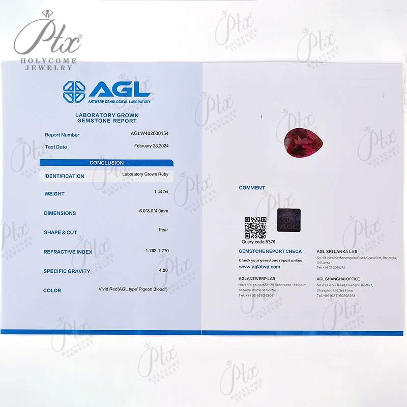 The Colorful Lab-grown Gemstone that is 0.1ct and above come with a AGL certificate. Here is sample plate.