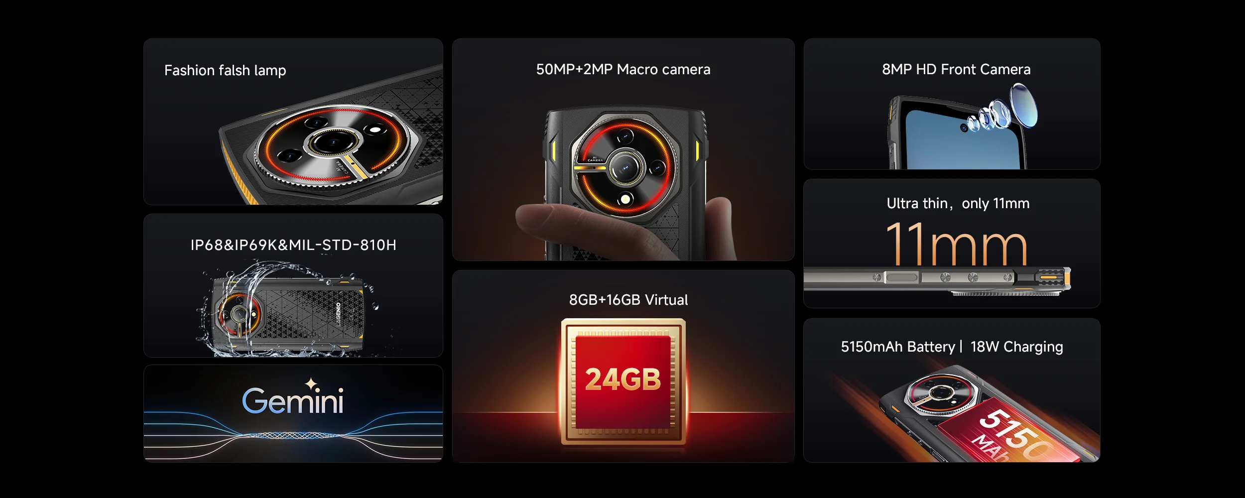 LAGENIO Panther 2 Pro 4G Rugged Smartphone Android 15 8GB+256GB Mobile Phone 50MP 5150mAh 6.7 " HD Ultra-thin Cellphone Gemini
