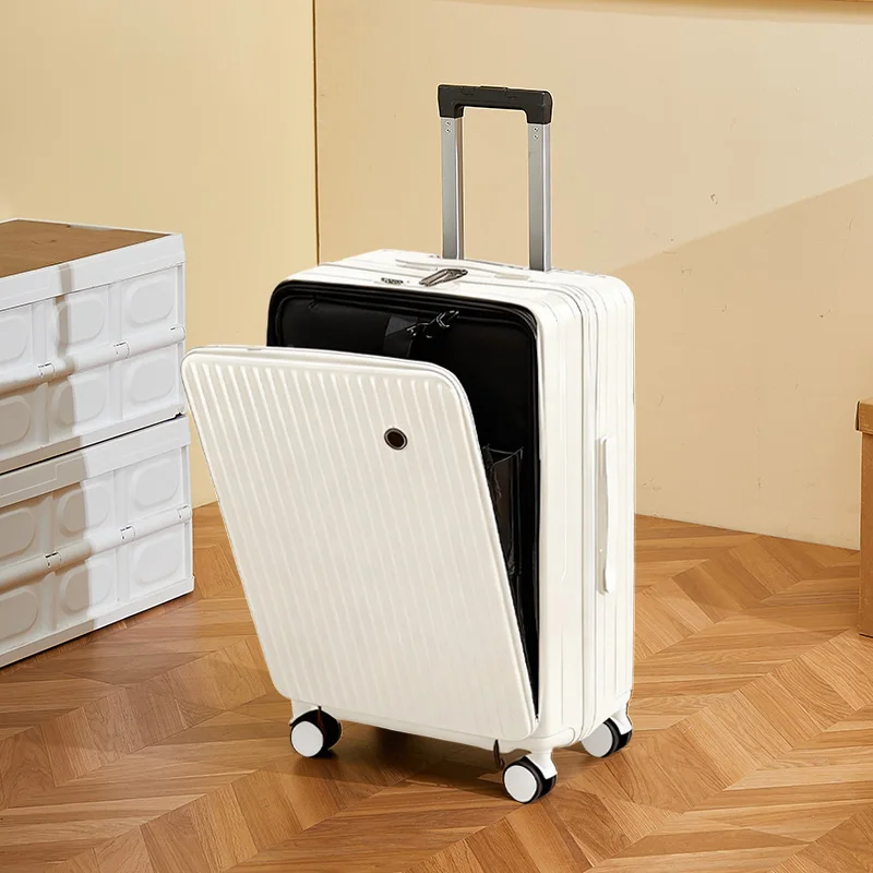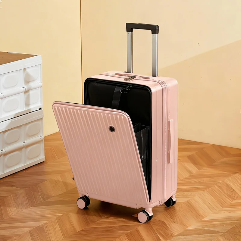 This rolling luggage boasts a fashionable design, making it a stylish choice for your travel needs.