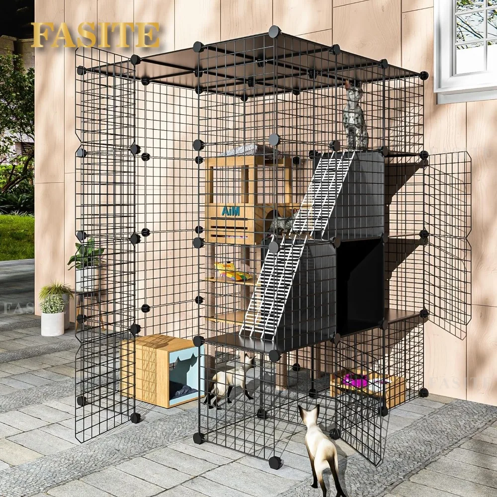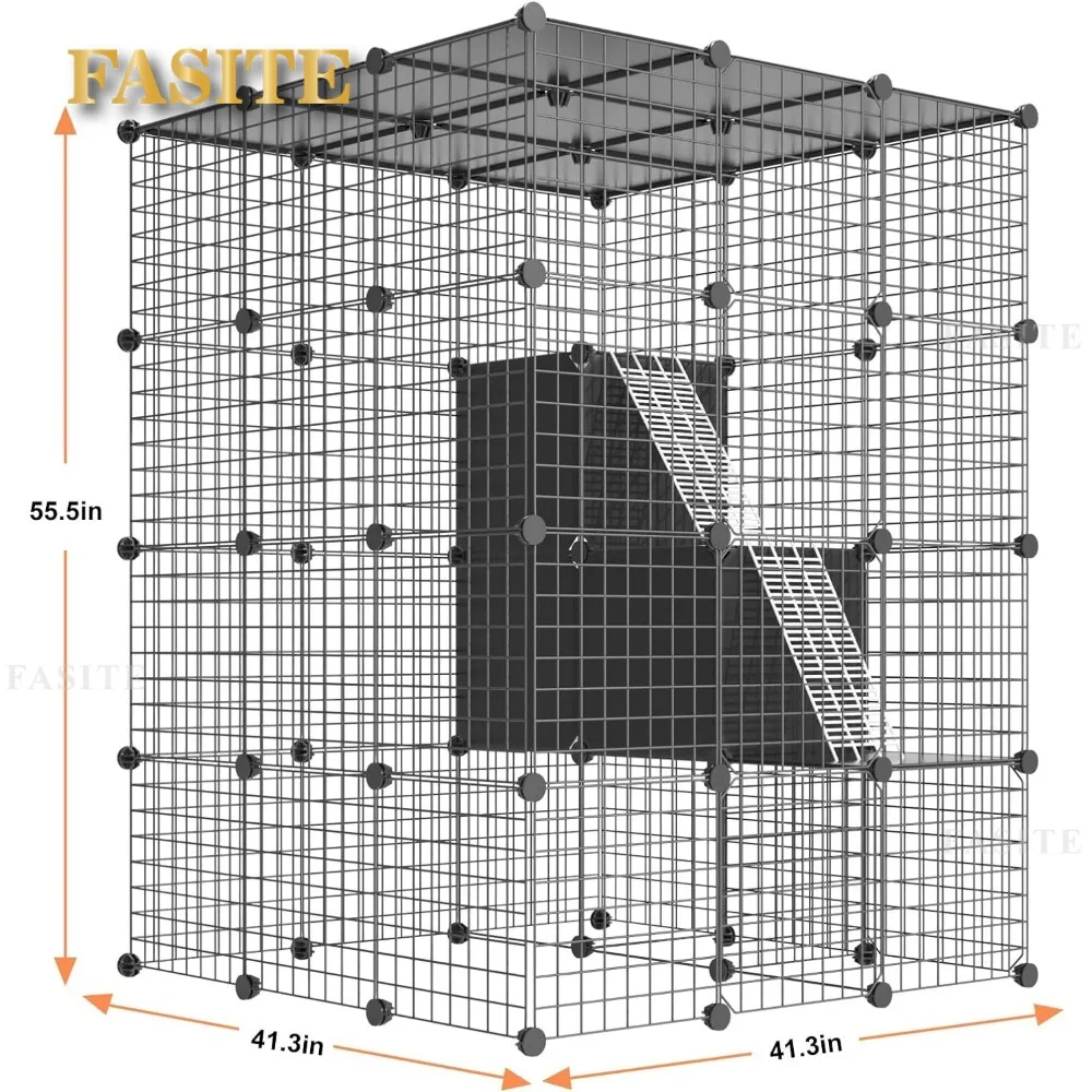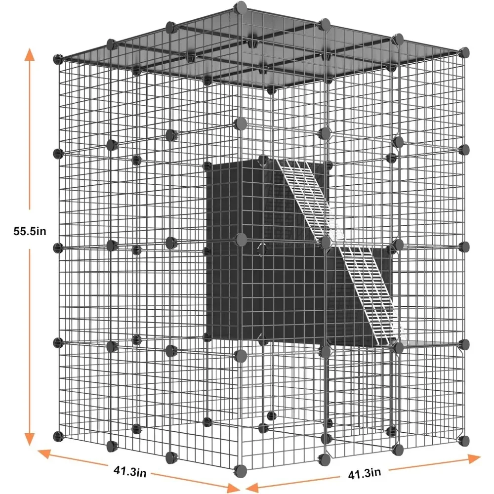 • 【High Quality and Well Designed】Each of the parts are well-designed. Every panels of the cat cage enclosure are all passed the load-bearing test. And the improved connection buckles are easier to connect. We especially gift a rubber hammer to ensure you could put up the large kitty cage more easily. The 3 cubes look in the cage is 3 pretty platformsfor your kitty to jump.