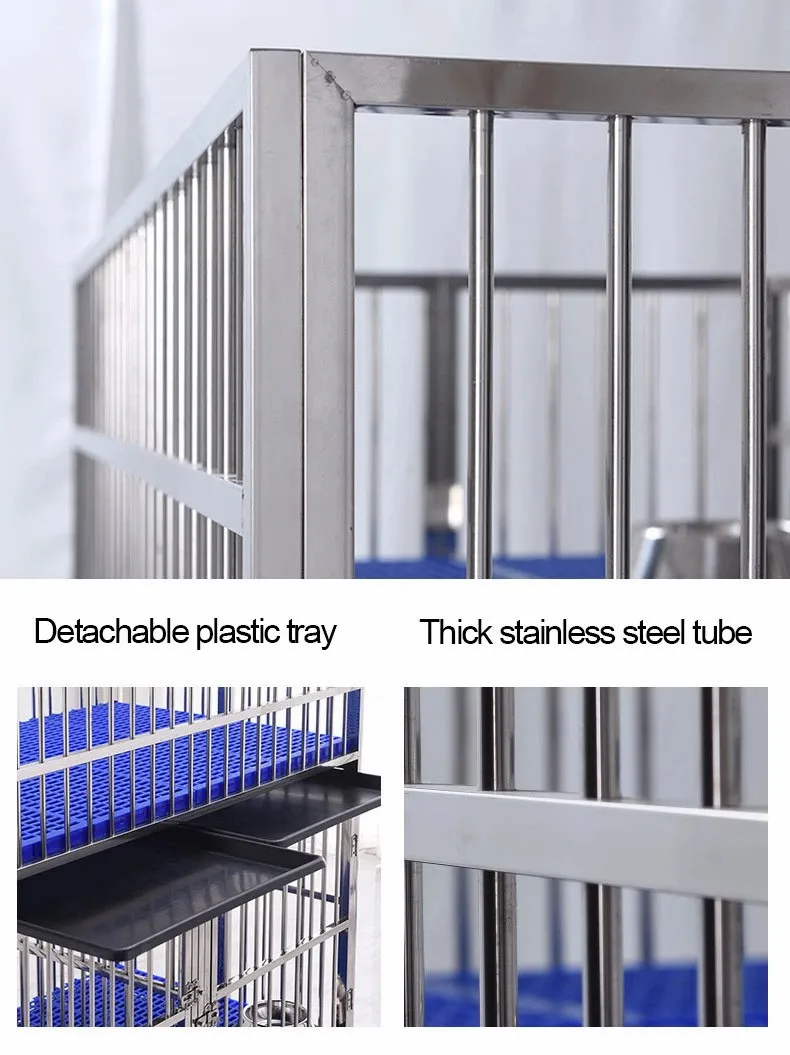 Large Crate Dog Cage Stainless Steel with Solid Pattern Pallet Tray Type