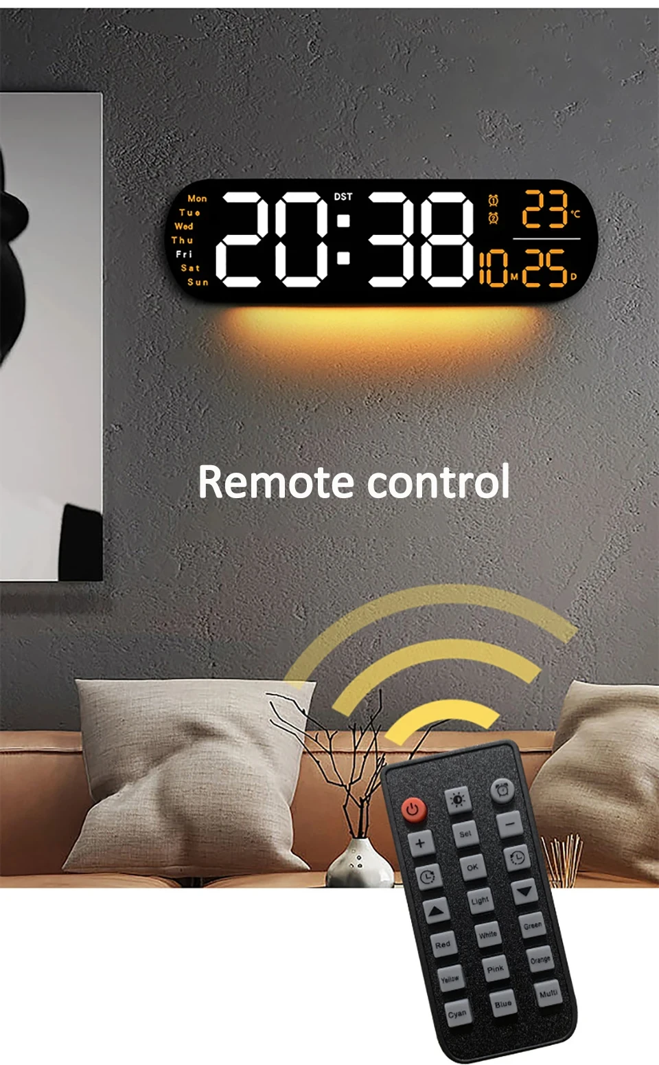 2. Equipped with a remote control, which can remotely control the LED electronic clock. Two-color design distinguishes different areas and allows you to see the time more intuitively.