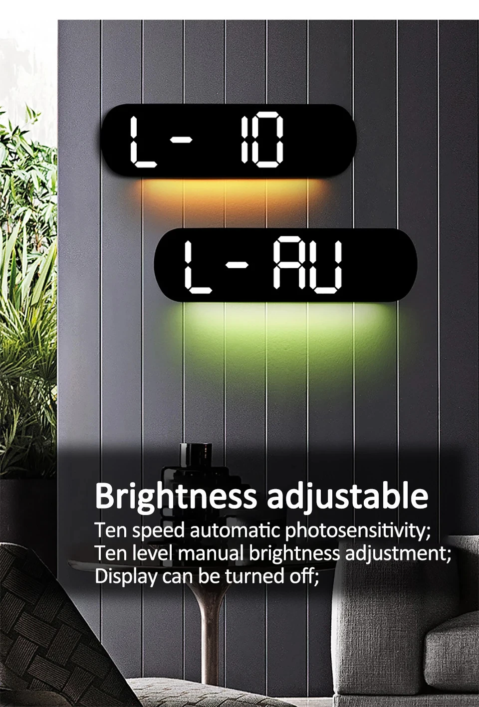 3. Brightness adjustment, ten-level automatic photosensitivity, ten-level manual brightness adjustment, display can be turned off, USB interface. The unique winding design on the back avoids wire interference, makes it more beautiful and keeps your home organized.
