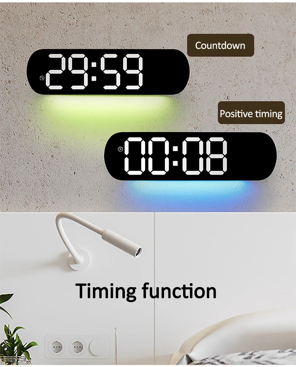 1. Oval LED simple wall clock, unique forward/countdown function, can also display time/date/temperature/week on the same screen.
