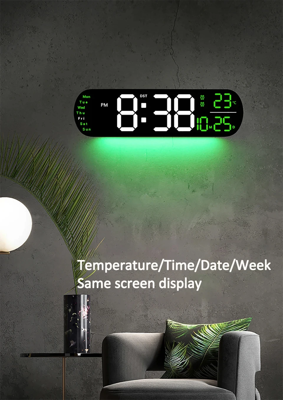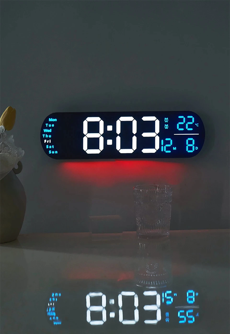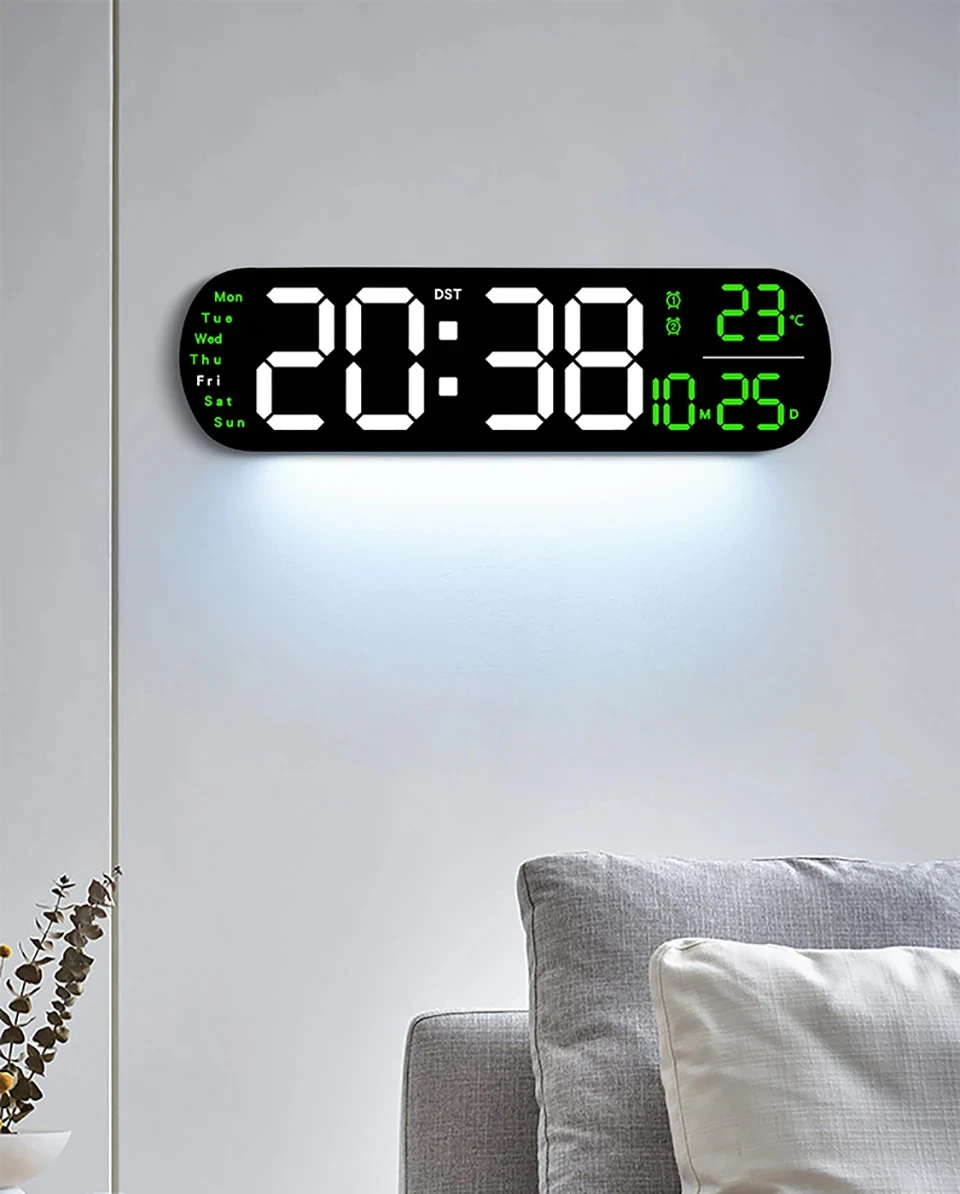 LED Digital Wall Clock With Remote Control Ambient Lights Time Date Temperature Display Alarm Clocks For Home Living Room Decor