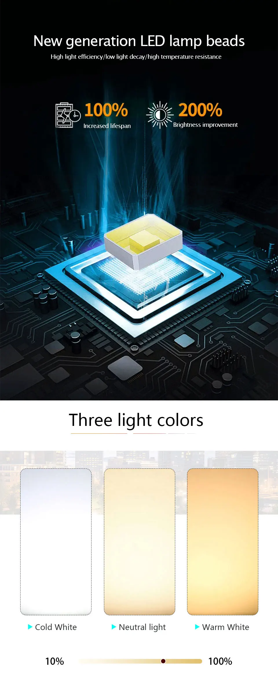 ● Die-cast aluminum, scratch and fade resistant. Efficient cooling structure. Special appearance against electrostatic and corrosion.