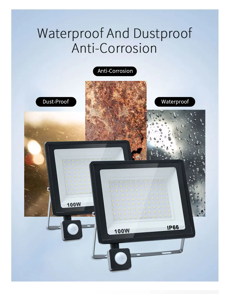 LED Flood Light PIR Motion Sensor 10W 20W 30W 50W 100W 150W 200W 300W AC220V IP66 Waterproof Spotlight Street Floodlight Outdoor