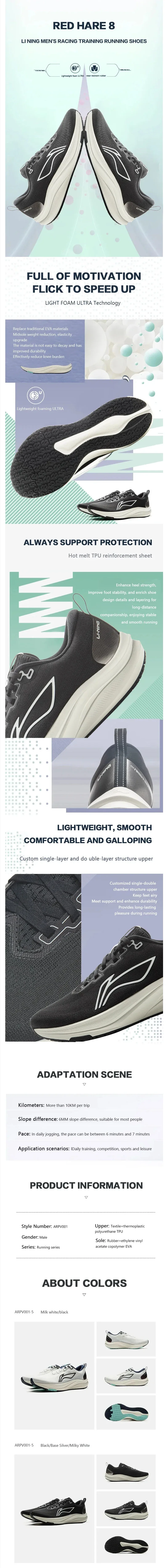 LI-NING Men’s Running Shoes RED HARE 8 Support Stability Basic Racing Training Shoes Sports Sneakers ARPV001