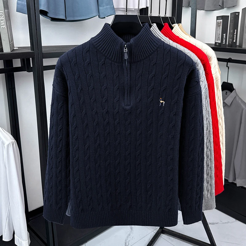 Luxury Brand Man Long Sleeves Knitwear Half-Zip Puppy Embroidery Mock Neck Winter Korean-Style Pullover Comfortable Casual Tops