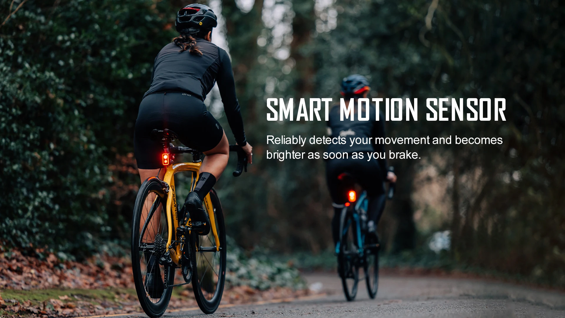 Built-in motion sensor, automatically turns on when braking (can be turned on/off manually).Ambient light sensor automatically adjusts brightness to the environment.