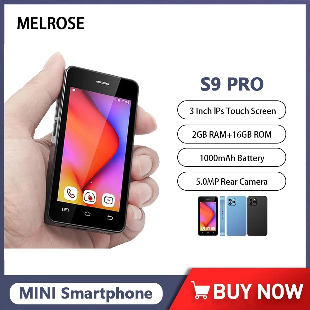 Melrose S9 Pro 3 Inch Ultra Slim Mini Smartphone Android Quad Core 2GB+16GB Mobile Phone 5MP 1000mAh 3G Compact Small Cellphone