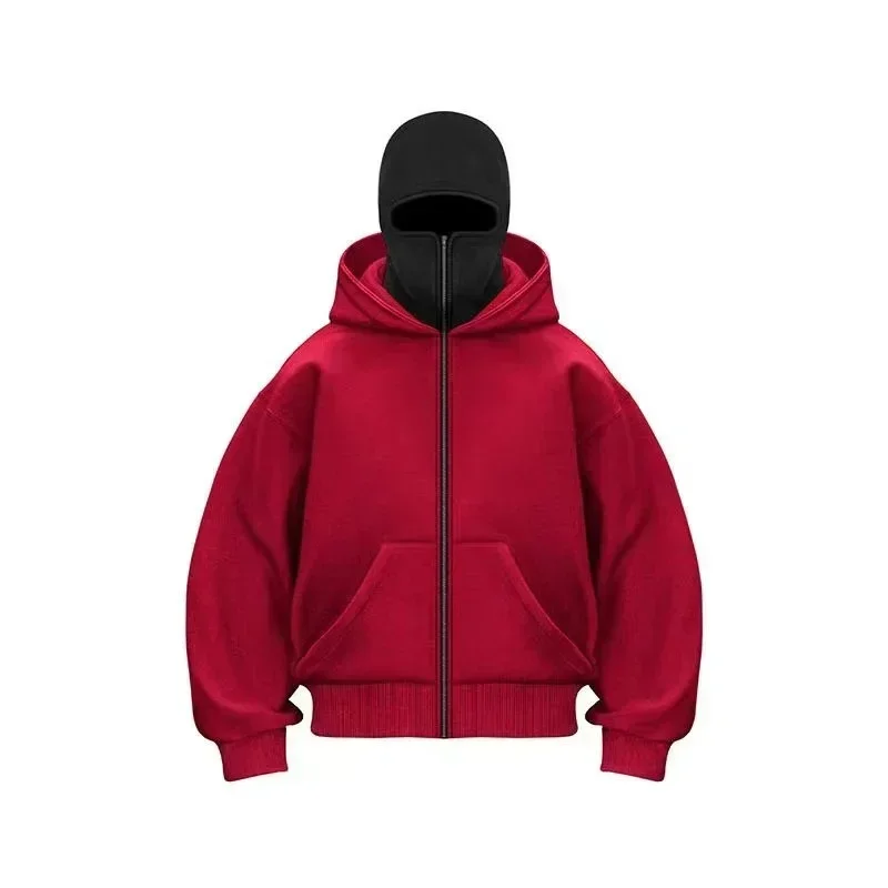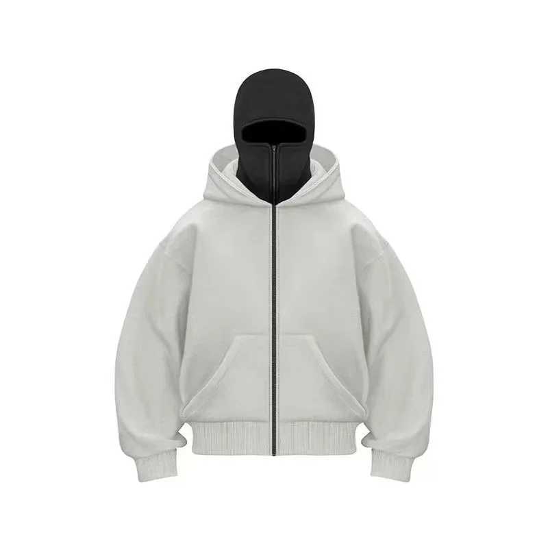 Men and women Balaclava Y2K Gothic Harajuku winter Warm new item double hooded sweatshirt men’s hooded mask zipper sports Jacket