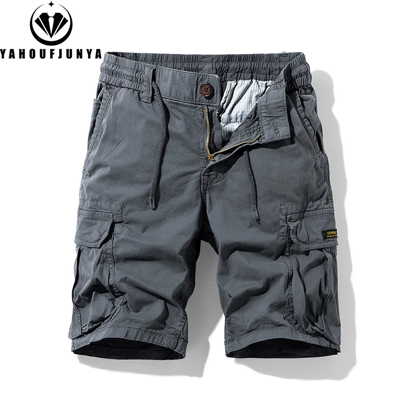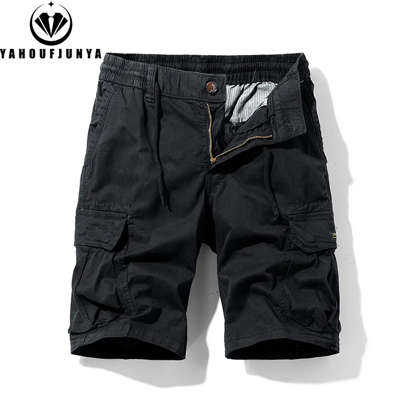 Men Summer Solid Color Outdoor Leisure Cargo Comfortable Shorts Men Elastic Waist Loose Straight High-Quality Design Shorts Male