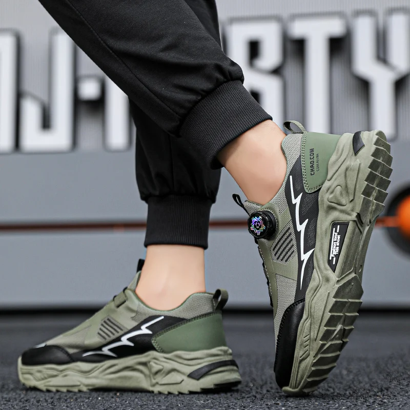Men’s Four Seasons Leisure Outdoor Odor proof Running Shoes Fashion Rotating Button Elastic Comfortable Sports Shoes