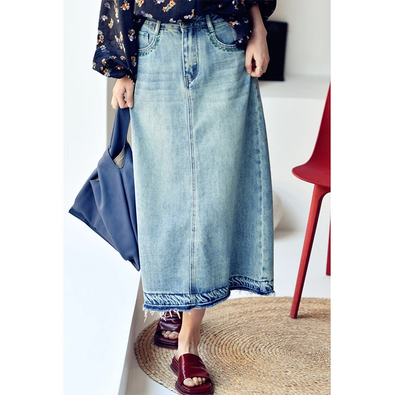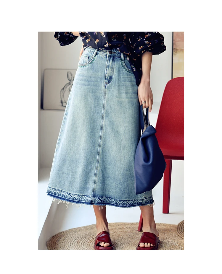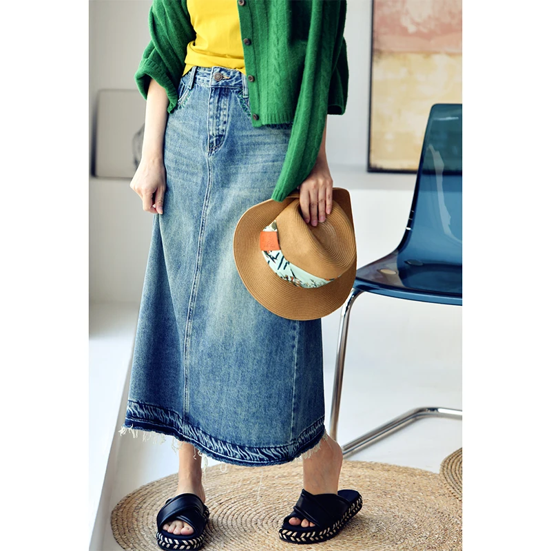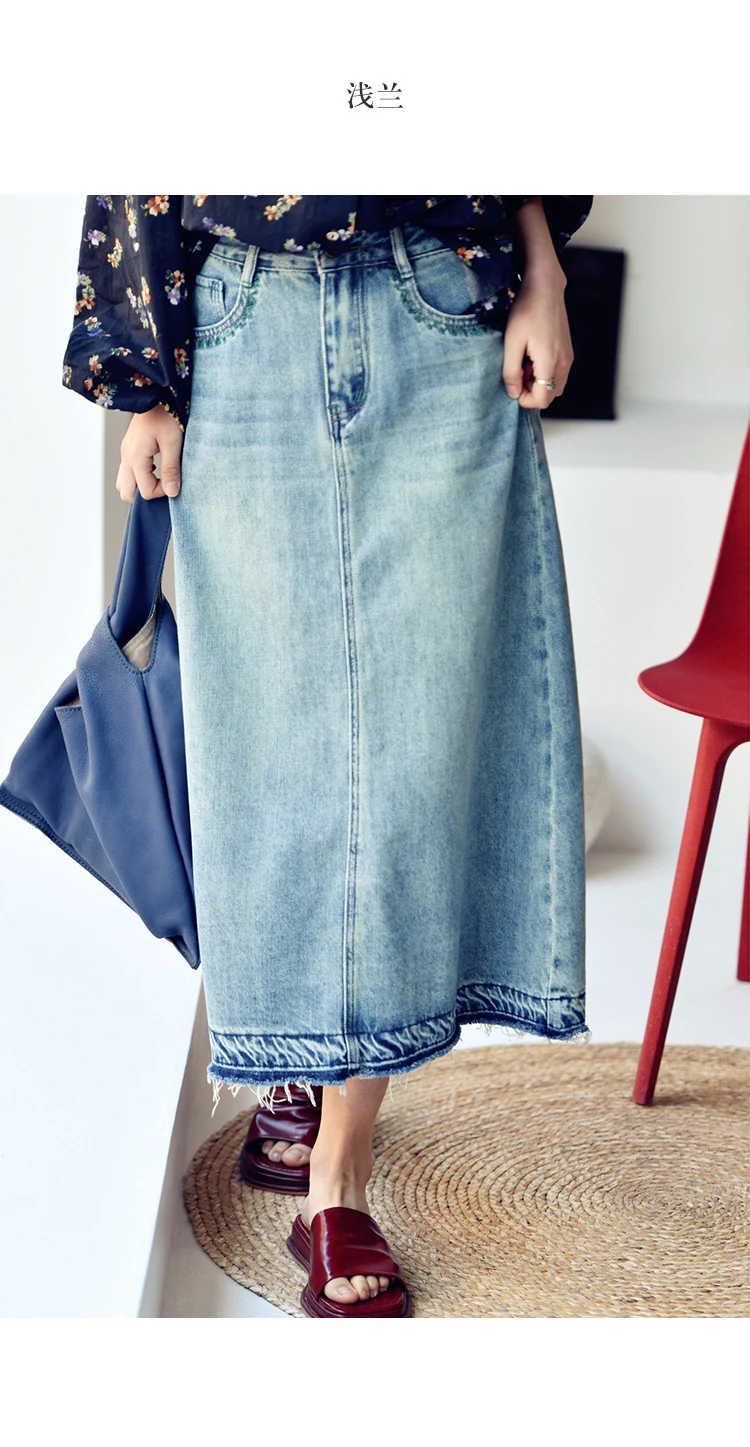 MICOCO Q1035C Seam slit loose high waist skinny denim skirt female Korean casual everything